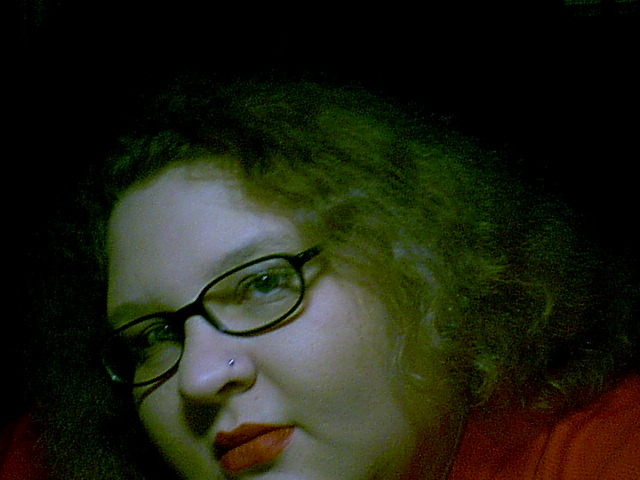 by my black framed glasses.
