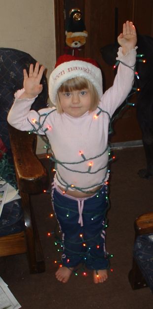 December 12, 2003 We decorated today. The tree is up, the lights are hung all over the front of the house. And well, in the house, on small children: ![]() ![]()