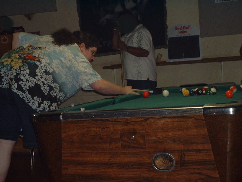 I'm getting ahead of myself, though. Our weekend consisted of a biker bar, eating, swimming, and lazing around our large hotel room and even larger bed. The biker bar, T and C's, we've been hearing about from Tracey and Danny for quite awhile. Now, you know in my head I had the stereotypical television picture of a biker bar in my head. Bikes as far as the eye can see, dirty nasty floors, fights in every corner. You know, that's what you're thinking. Even though I know that most bikers are good people, I still had that image. In fact, I have a great story about bikers, but again, that's for another time (one of y'all need to remind me when I forget to tell these stories.) It wasn't an expensive bar, by any means, it was small, dark, and hot, but it had a good band, pool tables, wonderful staff, and supposedly great drinks. Not that I got to drink, damn antibiotics I was on. It was pretty empty due to the holiday weekend, which was nice. They all played pool all evening, while I took pictures and held up the table. Only one argument that I saw all evening and that was a guy who decided he needed to freak at Tracey because of where she works. I hate to tell him, but had he continued with her, she would have kicked his ass. Tracey doesn't take shit like that. Hell, five years ago, she would have already been upside his head. I'm pretty damn proud of her for that. We took them home, then headed back to our room where I crashed and poor Tony spent the night trying to fall asleep. The next day, we spent with Tracey and Danny. Late in the afternoon we went in hunt for the shooting range I had looked up, taking Daniel, Tracey's son, with us. And we hunted and hunted. Oh, we found the address we had for it. It was an office for a park ranger, no sign of the range. We headed out just to look around, I spotted a sign for Camp Sheandoah and knowing there was a range out there, we followed them. On and on, deeper and deeper in the hills. I don't mean just mountains, I mean out into what could be Virginia's version of Deliverance country. Mile after mile we rode until we thought we were at the ends of the earth. And then there it was. Camp Sheandoah and hundreds of Boy Scouts and a friggin private range. Shit. Damn, damn. We headed back, finding our way with no problem, which for us is amazing. We met back up with our friends and headed to the hotel pool. I adore swimming. I've always loved the water, even more so since I've been disabled. Once I'm in the water, I can move about as much as I wish. I have my own personal floatation devices, which most people refer to as breasts, so I do not sink. The pressure is relieved from the bad nerves and I feel free again. We swam for hours, eventually Danny and Tracey left. I wasn't ready to climb out yet. I couldn't face the limited movement yet. We swam and talked until the air above the pool got to cold even for me. Once back in our room, we discussed staying an extra day, the real world be damned for another day. No decision was made, but when I tried to wake Tony before check out and he had only been asleep a few hours, our decision was made for us. I headed out in the car to explore more of our area. I drove for miles and miles just perusing the country side and enjoying the cold blast of air from the ac, until I realized it was getting late and needed to get back. We swam again, ate a leisurely dinner with Tracey and Daniel and promised to come back again soon. It was a wonderful few days, the