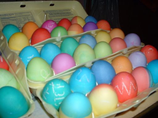 ![]() This year four dozen eggs came to the end of their life in boiling water upon our stove. 4 dozen large eggs who had to become beautiful works of art before Easter morning.